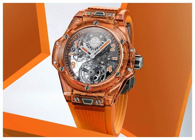 以前卫时尚和创新材质着称的宇舶表(HUBLOT),在「LVMH钟表周」发布全球第一款以冰橙色蓝宝石打造的陀飞轮,以及发表Big BangUnico计时码表的三款陶瓷表带,允诺未来耐磨耐刮的蓝宝石水晶与陶瓷将大量运用在旗下腕表,展现品牌在高科技创新材质研发的领导地位。