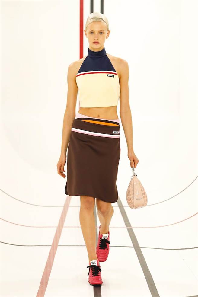 2021春夏的Miu Miu,充满了运动感与时装感,融合了两种看似高度反差的行态,但在这季作品中完美融合为一,这也是Miuccia Prada在发表会后聊的…「这是一个极致的系列,呈现两极对比与共容。运动服与晚宴服,现实与幻想时刻,两者缺一不可…」以极端二元的方向导出的全新作品,也呈现出Miuccia Prada女士贯有的二元对立性元素,从最根本的运动装束与晚宴服装,引申出拉色设计、华丽装饰缀以经典单品、看似简约的风格中内涵复杂设计,或是充满巧思的多功能设计;亦或是融合了高跟鞋与运动鞋元素,胶底低跟与足球鞋的衝突设计,Miu Miu这季春夏作品,呈现让人嘆为观止的对立衝突二元性。