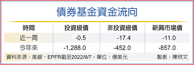 债市投资上,许家豪指出,美欧央行持续升息,造成衰退风险上升,通膨与利率政策步调近期仍是牵动市场氛围的关键;在利率债部分,因市场担心联准会货币紧缩政策将引发经济衰退,导致殖利率曲线向下回落,利率债券反而受惠。