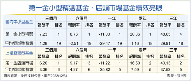 第一金投信旗下第一金小型精选基金与第一金店头市场基金,于国内中小型基金与上柜股票型基金短、中、长期绩效皆位居前二分之一排名,操作表现亮眼,两檔基金同为第一金投信股票投资部门基金经理人许维哲所管理。