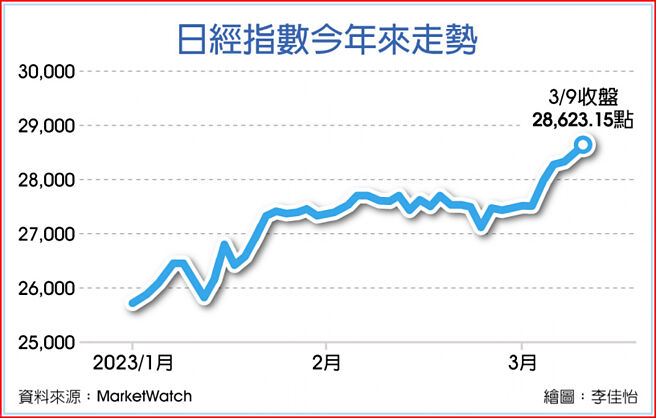 日股短线多头气盛,日经指数周四收盘再涨178点或0.6%,收在28,623点的去年8月26日以来新高。日经指数年来累涨9.7%。