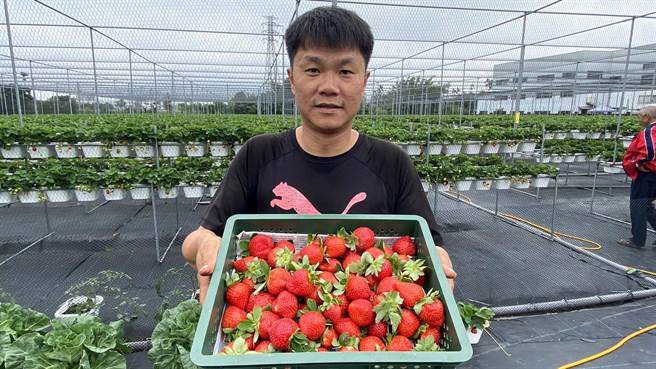 「爱吃草莓吗?爸爸自己种!」35岁林煜杰育有1岁、2岁及3岁女儿,原本当货车司机,也曾创业开火锅店,因孩子爱吃草莓,今年秋冬承租叔叔农地,并贷款100多万元,在神冈试种高架草莓。他说,孩子现在「草莓吃免惊」,还有多余的莓果透过网路团购及夜市销售。