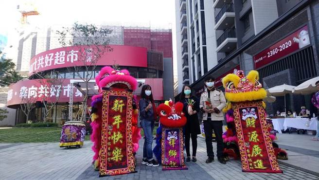 (总太地产董事长翁毓羚(中)表示,总太社区新春採购节活动,让住户们提前感受热闹应景的过年氛围。图/曾丽芳)