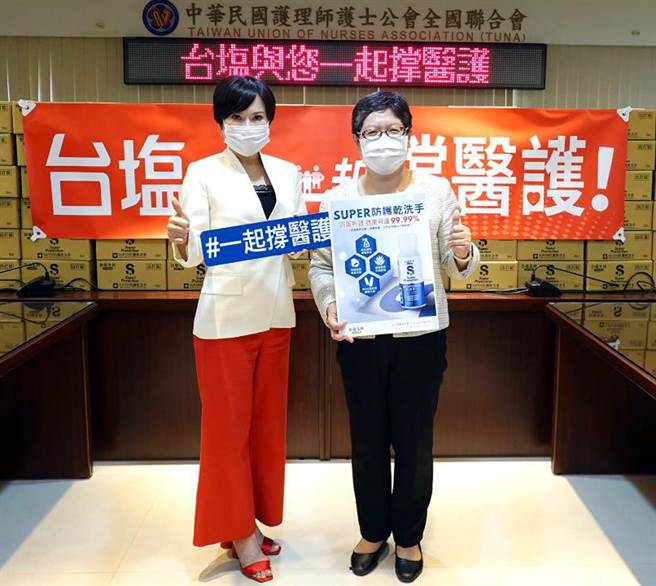 面对国内疫情持续升温,臺盐公司感佩全体医护英雄站在防疫第一线守护国人,宣布捐出3万瓶「SUPER防护乾洗手」,赠予中华民国护理师护士公会全国联合会,期让医护人员随时拥有满满的防护力,大家携手为台湾筑起防御阵线!