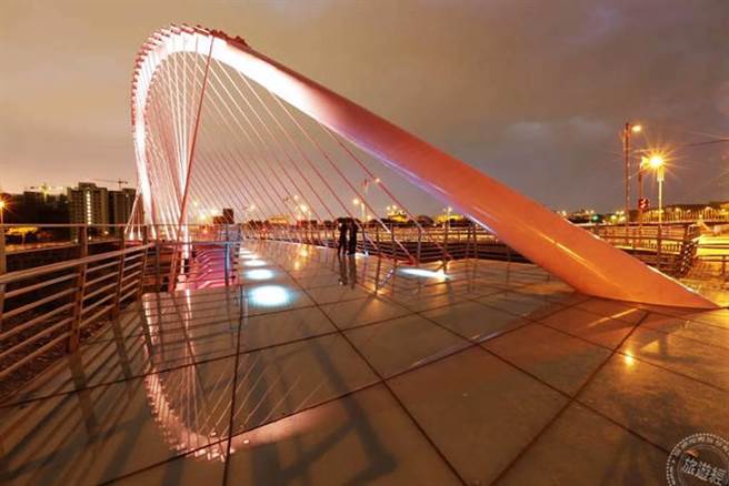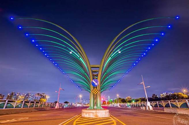 蝴蝶桥(图:中市府观旅局提供)大坑清新桥由喷泉式肋骨形状打造,象徵大坑地区青翠山林的景色,因桥梁特殊的弧形、对称的外观设计,状似一只展翅高飞的蝴蝶,因此也被称作「蝴蝶桥」。在夜间璀璨的灯光点缀之下,整座桥宛如一场精彩的灯光水舞秀,绿色的弧线钢梁像是水柱喷发,搭配钢梁末端的明亮蓝色光点,呈现活力动感之美,绚丽夺目的样貌,早晚总是吸引不少摄影爱好者驻足此处拍摄留下纪念。