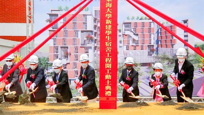 东海新建学生宿舍开工动土典礼,包括东海大学董事长吴清迈、前董事长曾纪鸿、校长王茂骏、原典建筑师事务所建筑师陈俊言、彰庆营造总裁斯严月圆,及东海校友总会长李基正等人,均亲临典礼现场,祈祷工程施工顺利完成。