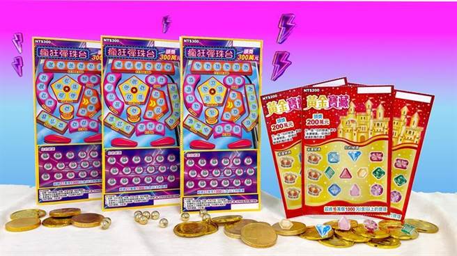 (台湾彩券公司4日推出2款全新主题刮刮乐「疯狂弹珠台」、「黄金宝藏」。图/业者提供)