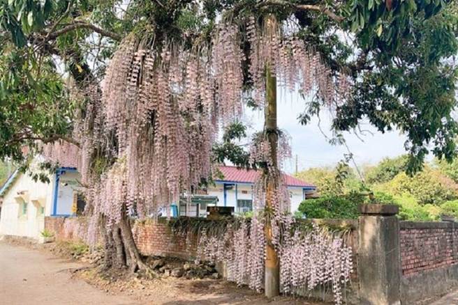 除了赏莲,位于白河区赤中寺附近的民宅,居民在家中老龙眼树上种植天宫石斛兰,红色的砖墙与绿色大树,盛开着宛如瀑布倾泻而下的石斛兰,现在也进入盛开期,想目睹美丽的粉紫色花卉瀑布,把握花开时间。