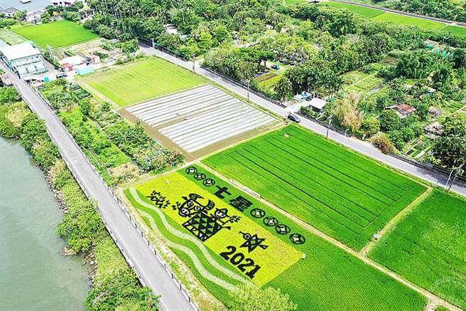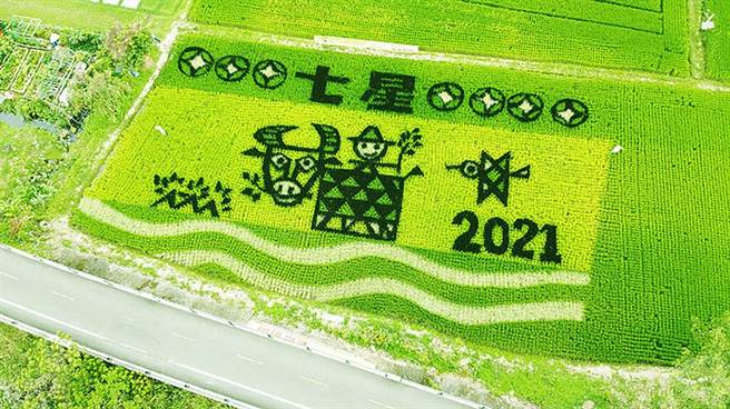 今年透过彩绘稻田艺术、传递关渡平原自然生态及水稻美景,臺北市政府产业发展局、行政院农业委员会农田水利署七星管理处及台北市七星农田水利研究发展基金会共同打造「七星春牛迎春、春回大地」水稻艺术地景,运用不同品种水稻编织出有如一片美丽的画布般,相当吸睛又可爱。而俯视彩稻田如一座美丽的绿色地毯,平舖美丽的关渡平原上,在不能出游的时间点上,不妨利用影像及影片来一场线上游!希望透过彩绘稻田让民眾了解我们的农业生长环境,藉此提升民眾对农业、生态环境的关怀,共同打造一个与大自然友善共存的环境,所以这一次图腾,以绘画的画法来设计,富有童趣,其中水鸟元素,起源于关渡平原溼地自然生态特有的候鸟经过的地方,代表着这片土地是健康、无毒的,健康的大地间育食着青蛙,包含福寿螺都是用人工及自然的农法除去,就是为了让民眾从产地到餐桌都能够吃得安心、吃得健康!