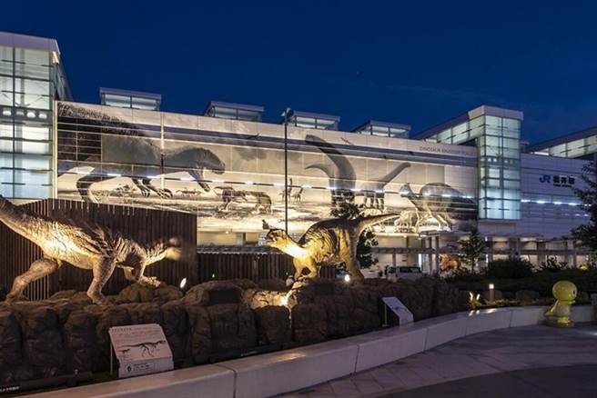 2015年JR福井车站前的「恐龙广场」正式开幕,让游客彷佛穿越时空来到侏儸纪,一踏出车站就有许多恐龙热情迎接。广场中展示有「福井巨龙」、「福井盗龙」与「福井龙」3只与当地息息相关的恐龙雕像,车站周围也能看到3D恐龙壁画及足迹化石等。