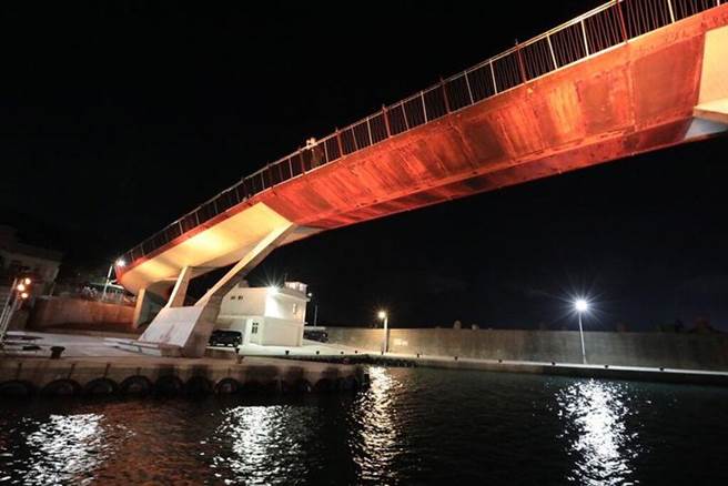 产发处黄健峰处长指出,景观桥全长168公尺,是衔接基隆市至新北市人本人行空间最关键的一哩路,但为抵抗海边强劲的风势,并兼顾兴建过程对渔船进出及渔民作业的影响,难度非常的高,桥体以钢构本体设计,结合周边海岸潮间带生态景观,以清水模建筑结构自然低调设计,并搭配视觉穿透的栏杆设计,连结滨海及环台自行车道,延伸到新北市水金九,预估一年可吸引20万人次游客造访。