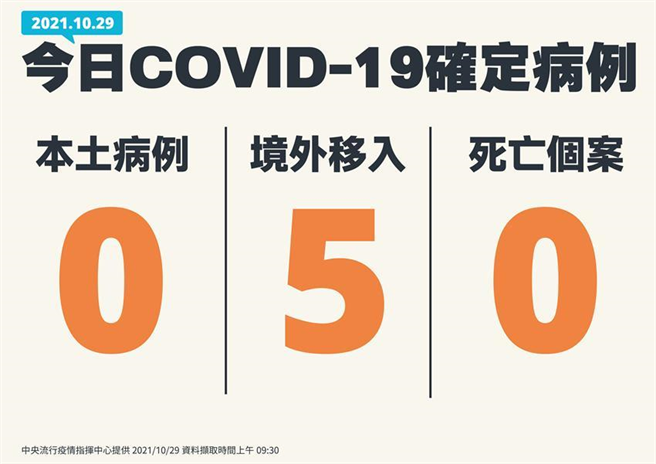 中央流行疫情指挥中心今(29)日公布国内新增5例COVID-19确定病例,均为境外移入;另确诊个案中无新增死亡。