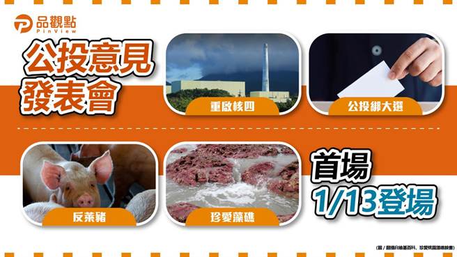 而这5场意见发表会举行时间分别为11月13日、11月18日、11月27日、12月2日及12月11日,办理地点依序为华视、民视、中视、台视、公视。首场意见发表会四大公投登场序为「重启核四」、「反莱猪」、「公投绑大选」、「珍爱藻礁」。
