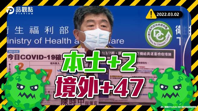 中央流行疫情指挥中心今(2)日公布国内新增49例COVID-19确定病例,分别为2例本土个案及47例境外移入,其中20例为航班落地採检阳性。