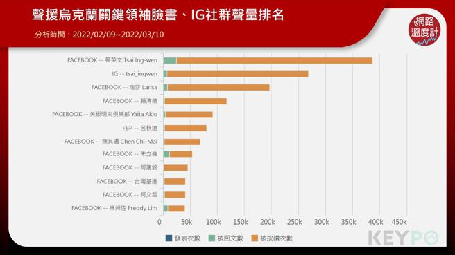 蔡英文声援乌克兰获得最多声量 陈其迈搭上灯会热潮分享数高