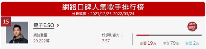 本文所调查之结果,非参考投票、民调、网路问卷等资料,名次仅代表网路讨论声量大小,不代表网友正负评价。