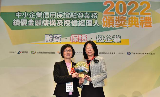 (台新银行连续10年获「信保金质奖」,由金管会副主任委员邱淑贞(左)颁奖,台新银行环贸金融处资深副总经理苏韵琇代表领奖。图/台新银行) 经济部23日举行「2022年度办理中小企业信用保证融资业务绩优金融机构及授信经理人」颁奖典礼,台新银行连续10年获「信保金质奖」,由金管会副主任委员邱淑贞颁奖,台新银行环贸金融处资深副总经理苏韵琇代表领奖。 台新银行这次囊获「信保金质奖-绩优总行」、「信保金质奖-绩优授信经理人」 、「批保卓越奖」等三项奖项,备受主管机关及中小企业的肯定。苏韵琇表示,近年因应肺炎疫情,台新银开发出间接保证送保资料介接系统的「送保即时通」外,2022年为响应政府数位政策,培养中小企业客户转型使用银行数位金融服务,将推出绿色金融服务平台,中小企业可透过线上身份认证传输基本申贷资料,导入系统审核流程,再利用RPA、大数据.等技术,结合API串接经济部中小企业处的「中小企业融资平台」全方位整合中小企业内外部资讯,完成两端流程自动化。 苏韵琇说明,绿色金融服务平台可望减轻中小企业提供资料的负担,解决长久以来中小企业因资料不透明衍生风险辨视的困难,大幅提升审核效能及有效降低风险,减少繁琐的人工作业、缩短申贷时间以快速回应客户需求,并实现台新银行的3S服务精神,提供中小企业最优质的申贷体验,达到净零减碳成效。 台新银行指出,「信保金质奖」可适用信保基金对同一企业保证融资总额度额外增加2,000万元,即同一企业保证融资额度提高为1.4亿元,由信保基金及台新银行回馈给企业的实质帮助。「批保卓越奖」配合企业户可用更优惠的保证手续费取得融资额度。台新银行也为无形资产融资提供融资机制,由工研院负责出具有公信力的评鑑报告,台新银行参考工研院评鑑报告提供融资,并由信保基金提供最高9.5成信用保证,补足企业担保不足的问题,最高融资总额度为2.2亿元。 台新银行强调,该行持续发挥诚信、承诺、创新、合作服务热忱,并善尽企业社会责任,未来将加强扩大与中小企业信保基金合作,同时也持续配合政府ESG的政策推动,例如台新银行近期主推的「中小企业绿色融资专案」、「太阳能电厂融资专案」等,透过台新银行建置的「绿色金融服务平台」协助中小企业落实ESG,一起创造银行、企业、社会三赢的局面。