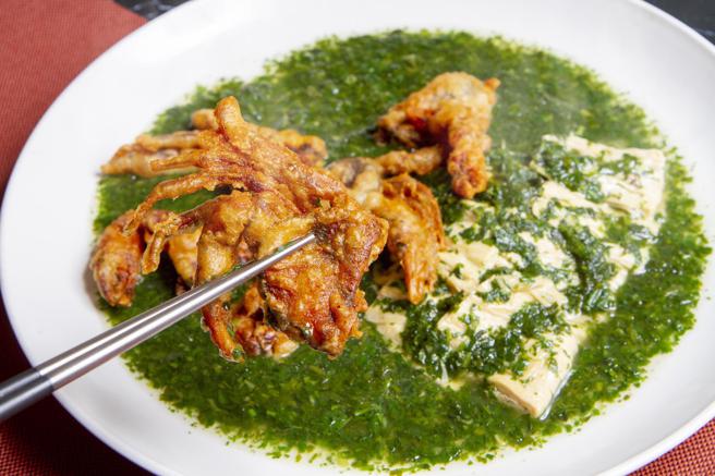 爱吃海鲜的饕客还可品尝「荠菜软壳蟹」,富含钙质、甲壳素及虾红素的软壳蟹,裹上师傅特调的麵衣,炸至金黄香酥,搭配滑嫩的有机豆皮及淡雅清香的翠绿荠菜,香气四溢;另道「牛奶贝炖水蛋」则使用农委会水产试验所发展出来让人养殖的经济贝类,壳较文蛤白故称牛奶贝,养殖时间较文蛤长,肉质鲜甜、口感Q弹饱满,再搭配滑嫩的水蛋,要让饕客每口都尝得到鲜甜。