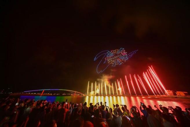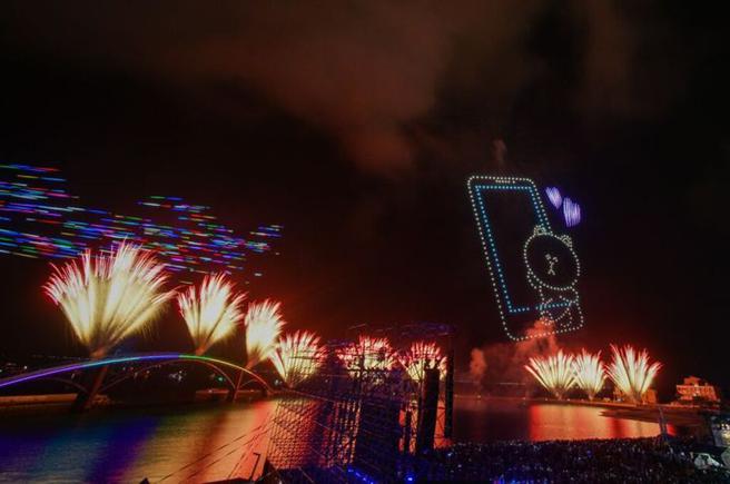 ▲LINE FRIENDS主题无人机科技灯光秀,见证科技生活的美好。 图:澎湖县政府/提供