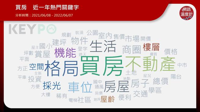 原PO结论,考量价格的话,2F真的不是多烂的选择,而次顶根本跟一般楼层没两样,如果怕吵又有预算的,他很推荐顶楼,还可以充分享受顶楼的公共区域!因此,为了瞭解民眾对于买房会特别注重什么,《DailyView房产温度计》进一步透过《KEYPO大数据关键引擎》调查(2021/06/08 - 2022/06/07)来看「买房」的热门关键字,可以发现民眾买房时,特别在意「格局」、「机能」、「车位」、「楼层」、「屋龄」、「空间」等,很注意房子的基本规格与周围环境。