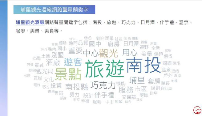 埔里观光酒厂、台湾玻璃馆网路声量关键字显示各自的观光重点