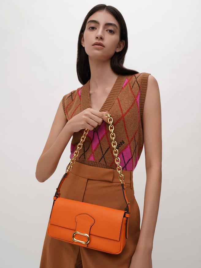 CHARLES & KEITH 集团精选旗下CHARLES & KEITH 和 PEDRO单品,集团分别从两品牌中各自挑选四单品,分别是橘色系的Daki腰带扣肩背包、莎莉单肩包、紫色系的Rainier厚底乐福鞋、杜瓦尔水桶包、绿色系的Bonnie托特包、黑色系的Adrian玛莉珍鞋、柏林高跟鞋以及Ari盒子单肩包,其中Ari 盒子单肩包,侧边的毛茸小圆包彷佛万圣节小鬼头,替装扮增添节庆俏皮感。