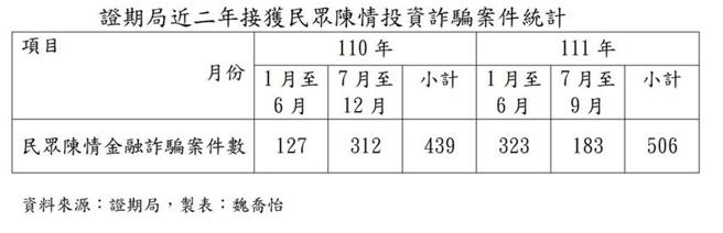 高晶萍表示,网红若无照却涉及非法全委投资代操业务,将涉投信顾法第六条依同法107条有刑责,金管会将会依事证做查核。据金管会到9底统计,金管会接获民眾检举投资诈骗案达506件,已超过去年一整年439件,显示今年在台股动盪下,不少投资诈骗案趁虚而入。金管会指出,网路投资诈骗案类型主要有七种,包括一、冒名诈骗、二、非法金融交易平台、三、电话简讯成立LINE群组等,劝诱购买股票、四、推销贩卖未上市柜股、五、非法虚拟货币交易平台、六、经营非法期货和七、经营非法投顾。