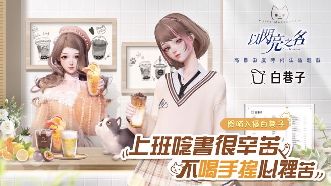 凡于活动期间11/4至12/25,至全台白巷子现场门市购买「闪亮饮品」,即有机会获得角色吸管套(共三款随机获得)、联名纸杯身(11/30开始);消费满额有机会获得角色杯垫(共五款随机获得),出示游戏画面还能享5元折扣,赠品与优惠折扣数量有限,心动不如马上去白巷子来一趟闪亮之旅!