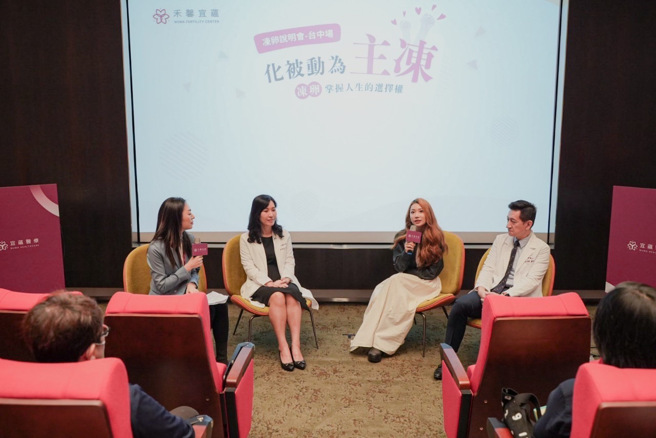 台中禾馨宜蕴生殖中心举办冻卵说明会《化被动为主冻,掌握人生选择权》,王怀麟院长、国际医疗部黄佩真主任及新国民女友依依。依依身为追求事业的现代女性角度与医师进行对谈、分享是什么让她想要制定冻卵计画,望能帮助更多女性厘清冻卵规划。