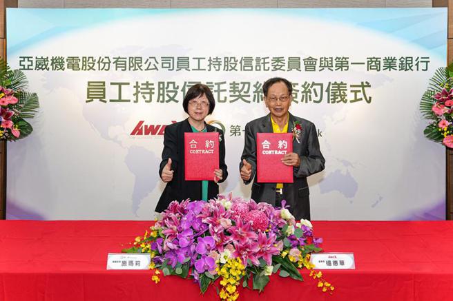 (亚崴机电与第一银行共同签署员工持股信托契约,由第一银行副总经理施玛莉(左)及亚崴机电董事长杨德华(右)代表签约。 图/第一银行提供) 全球知名的CNC加工中心制造商「亚崴机电公司」为提升员工福利,协助达到长期储蓄、累积财富,以保障未来退休之生活安定,于16日与第一银行共同签署员工持股信托契约,经由双方合作,依据员工每月提存之自提金,公司相对提拨奖励金,透过信托机制鼓励员工以购买公司股票的方式储蓄,激励员工与公司共创良好绩效。 亚崴机电成立于1986年,为全球知名的CNC加工中心制造商,亦是台湾大型加工设备的领导品牌,营运中心遍布新竹、台中、嘉义、苏州、洛杉矶等城市,行销网络涵盖40个国家或地区;客户群包括航太、汽车、船舶、能源、电子、通讯、机械、模具等各个专业制造领域,是国内少数符合德国TUV认证合格的工具机制造厂,多年来亚崴也获得多项荣耀,例如外贸协会「优良产品设计奖」、「优良自创品牌奖」,以及机器公会「工具机创新产品奖」等,与母公司程泰机械皆名列1,000大台湾制造业之一。数十年来,亚崴机电始终克尽企业社会责任CSR、致力打造「友善职场」,为提升员工福利并积极培育人才,今年起更纳入长期稳定的员工福利计画「员工持股信托」,期能增加对员工未来生活的保障、提高向心力、增进劳资和谐,让公司永续发展。亚崴机电表示,本次合作主要是借重一银在员工持股信托业务方面的丰富经验,以及全方位的信托服务,帮助员工在工作打拚之余,亦能轻松完成自身退休规划。随着国内企业推动ESG(环境、社会、公司治理)的浪潮愈趋成熟,为创新员工福利制度及因应未来劳退员工自选方案之准备,一银积极响应政府推动员工福利信托业务,领先同业于2019年首创员工可同时选择「员工储蓄信托」及「员工持股信托」两种不同投资类型的新型态员工福利信托方案。此外,一银推出手机APP版的「员工储蓄信托平台」系统,让参与员工福利信托计画的企业员工,可以随时使用手机APP掌握个人「员工综合储蓄帐户」的投资状况,并协助企业结合公司奖惩考核制度及员工未来人生阶段的资金需求规划,订定更为弹性同时兼具奖惩福利之员工长期激励方案,共同创造劳资双赢的局面。员工福利信托是退休金第三支柱中重要的工具,一银积极协助民眾提早为退休生活做准备,自2016年金管会办理安养信托评鑑计画实施以来,不仅年年入选为绩优银行,并在2021年获金管会第一期信托2.0评鑑「安养信托奖」第一名及「最佳信托奖」第二名,同时获第一届多元信托创新奖「员工福利信托创新奖-优质奖」。未来一银将持续秉持「就在你左右」的精神,透过组织升级、策略发展、人才培育、异业结盟及系统提升等面向推展全方位信托业务,并藉由专业团队,竭诚用心提供更完整的信托服务。