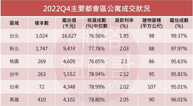 统计显示,去年第四季30年以上的公寓,北市贷款条件最佳,房贷利率仅1.95%,平均银行的鑑估价格约1663万元,在台北市想要买一间标准品房屋的代价不小,不过北市公寓的贷款成数并未特别突出,贷款的中位数约77%。其他都会区虽然贷款利率较高,不过因为买方多为首购,且购屋房价仅北市的1/3~1/4,因此贷款成数中位数有些都接近79%,但跨出双北市以外,公寓就不属于购屋主流。