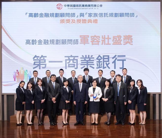 (第一银行推展安养信托业务屡获肯定,在第一届「高龄金融规划顾问师及家族信托规划顾问师」颁奖及授证典礼的团体奖项中,获「军容壮盛奖」,由金管会主委黄天牧(前排左六)颁奖,第一银行董事长邱月琴(前排右五)率信托团队与会并代表受奖。图/第一银行提供) 第一银行推展安养信托业务屡获肯定,在第一届「高龄金融规划顾问师及家族信托规划顾问师」颁奖及授证典礼的团体奖项中,获「军容壮盛奖」肯定。第一银行致力于推展安养信托,为普及信托观念及向下扎根,不仅于各营业单位设立信托业务专员,并有267位行员取得高龄金融规划师认证,近两年也举办上百场信托讲座,参与人数约3,000人。第一银行今年更获第二期信托2.0评鑑最佳信托奖第二名,以及安养信托奖第二名,连续两年获奖展现出第一银行推展全方位信托不遗余力,共同打造社会共融的金融环境。第一银行也跨业结盟创新提供客户非金融面的升级版安养服务,包括结盟计程车业者推出无障碍计程车媒合服务、建置无障碍网路银行(友善金融服务网)、无障碍服务柜台与即时「线上手语视讯翻译服务」,满足高龄者及身心障碍者于生活各种面向所需。第一银行并与八福银髮服务公司(即最多人使用的长照平台:爱长照)签订合作意向书,以「暖心长陪伴、照顾总动员」的方向,加入由「爱长照」发起的「星云计画」照顾者赞助联盟,从2023年开始提供服务,预计在一年内达成服务2,000个家庭的照顾者,提升家庭照顾者的管理能力,不再彷徨或者陷入照顾的困境,提供臺湾的照顾者全方位的支持。第一银行响应政府政策推动信托2.0,持续深耕及创新高龄金融与传承信托服务,除年年获得金管会信托2.0及安养信托绩优机构肯定,亦获金管会选定公股唯一金融友善标竿示范银行。未来将持续发展各式各样适合普罗大眾的信托服务,落实「就在你左右」的经营理念。
