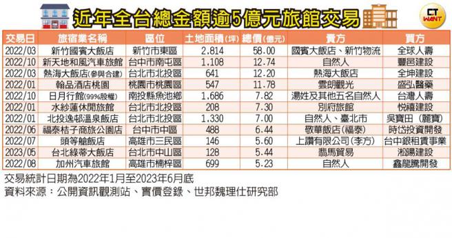 商仲业者统计,2022年至今,全台总金额超过5亿元的大宗旅馆交易,共11笔,台北市就有4笔,且都是等着改建的危老案;而台中、高雄近年也有不少旅馆转手给建商的案例。专家表示,市区土地开发几近饱和,素地稀缺,地段佳、基地大、产权单纯的旅馆,自然成为建商猎地对象,如又符合危老申请条件不受购地贷款限制更佳。