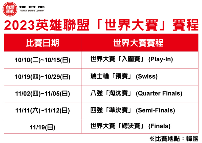 一年一度的电竞盛事2023英雄联盟「世界大赛」,今天10/10(二)起至11/19(日)在韩国隆重登场,这是每年电竞迷也是运彩迷不可错过的重要赛事,为期一个多月的世界大赛本届到底谁会夺冠,大家可以买张运彩猜一猜,从「入围赛」开始台湾运彩就会全面提供多种玩法,希望大家会喜欢。