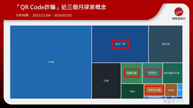 研究方法:《KEYPO大数据关键引擎》舆情分析系统拥有巨量资料,以人工智慧作语意分析之工具资料搜集范围:每月处理1000亿以上中文资料的网路社群大数据资料库,其内容涵盖Facebook、YouTube、新闻媒体、讨论区、部落格等网站,针对讨论『QR Code』相关文本进行分析,调查「探索概念」(注1)作为本分析依据。