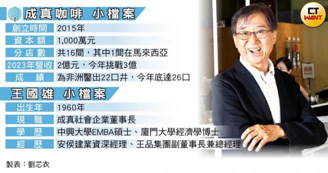 「小火锅、烧肉、茶饮都符合条件,但我最终选择咖啡,还有一个因素,就是以前在王品忙完都比较晚下班,我回家如果把小孩搞定后,都会和老婆偷溜出去喝咖啡,既然我们那么爱喝咖啡,就乾脆来开咖啡厅。」他褪下领军300间店副董事长头衔的隔天,便带着4人团队,拿出一千万资本创办「成真社会企业」。