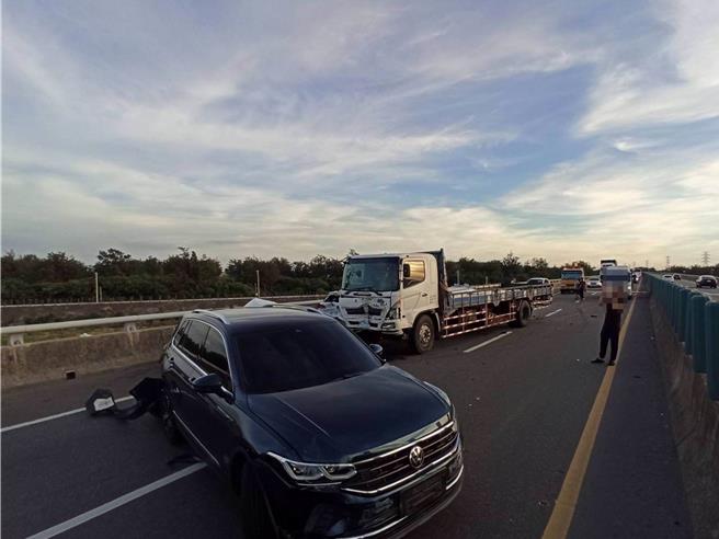 台61线西部滨海快速公路彰化伸港北上路段,今天傍晚发生连环车祸,共有2辆大货车及4辆自小客车发生事故,酿2人受伤送医,幸均无生命危险,肇事原因由辖区警方调查厘清。