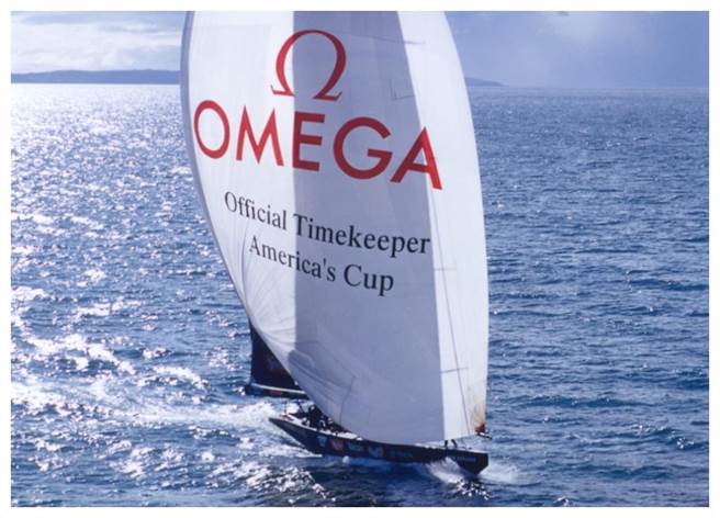擔任美洲盃官方計時的歐米茄(OMEGA)推出海馬潛水300米美洲盃計時碼表,外型以藍白藍三色調為主,藍色陶瓷表盤搭配白色琺瑯潛水刻度表圈,並裝飾了紅色陽極氧化鋁「帆船賽倒數指示環」、靈感來自船身造型的鍍銠小秒針等,擁有全新碼表鎖定系統、快換表帶與防濕滑按鈕,還加贈一條橡膠表帶。