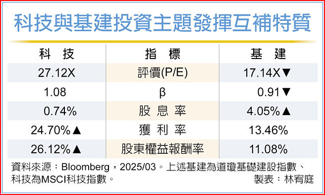 然而,本波重災區集中在美股的成長股,非美區域反而展現出韌性,其中像是道瓊基礎建設指數2月份上漲達3.1%,即突顯出價值與防禦性特質較高的基礎建設與公用事業類股的投資價值優勢。此外債券也因資金避險需求湧入壓低殖利率,亦讓近期債市表現相對穩健。