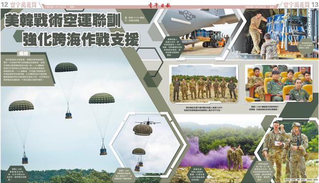 為加強應對北韓威脅,美國空軍與南韓空軍於7月初攜手舉行跨海戰術空運聯訓,由美方自駐日美軍橫田基地出動4架C-130J運輸機,跨越日本海飛抵位於南韓釜山的金海空軍基地,與南韓空軍C-130J運輸機,共同進行酬載裝卸、任務航線和空投區規劃,以及實際空投作業訓練,驗證關鍵時刻的前線補給支援能力時,也有效強化兩軍戰術空運能量、作業互通性及夥伴關係。